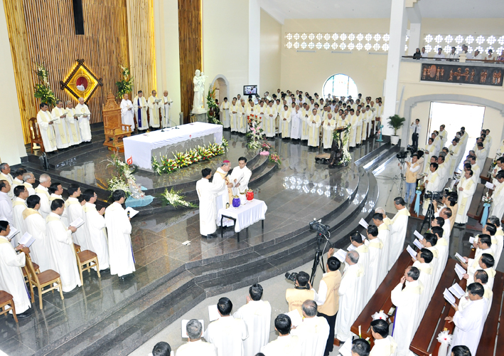 Nhân ngày lễ Truyền Dầu, ngày của các linh mục, Đức cha cảm ơn tất cả mọi thành phần Dân Chúa khắp nơi đã nhiệt tình, đầy quảng đại góp phần mình vào cho việc xây dựng các công trình cần thiết của Giáo Phận (như Đại Chủng viện, Toà Giám mục…). Việc làm này góp phần tích cực cộng tác với Giáo Hội trong việc chuẩn bị nhân sự tông đồ cho tương lai.